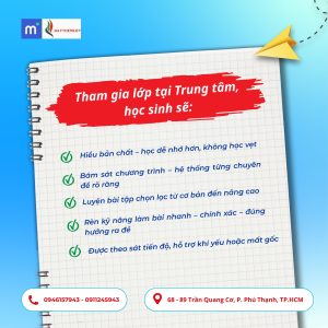 📩 Inbox Trung tâm để được tư vấn lộ trình học phù hợp nhất cho con/em mình.