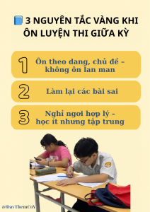 Dưới đây là 3 nguyên tắc vàng được Trung Tâm Dạy Thêm Cô Ý chia sẻ – giúp các em học sinh ôn thi giữa kỳ hiệu quả, nhẹ nhàng và tự tin hơn 👇