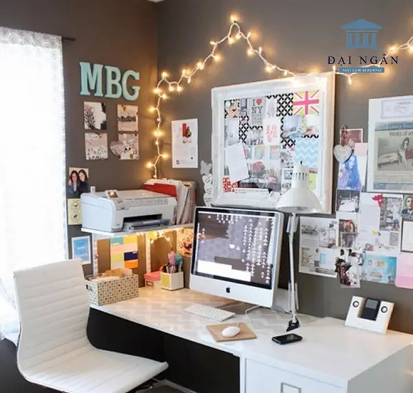 • Bảng ghim hoặc bảng trắng: Treo một bảng ghim hoặc bảng trắng gần bàn để ghi chú hoặc lên kế hoạch học tập.